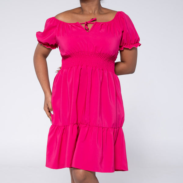Elevate your style with our Cerise Tiered Dress! Tiered Soft PolyModel wears a size 34Style IQ7847SIZE GUIDE